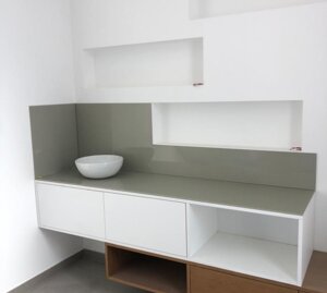 Il paraschizzi in vetro laccato può essere personalizzata al massimo: misure e colore RAL... addirittura la forma del vetro per poter ottenere anche un paraschizzi sagomato! Inoltre anche la posa è davvero semplice.